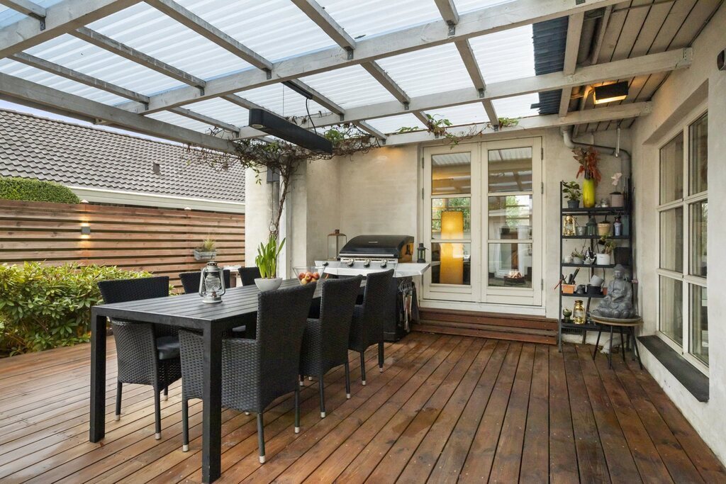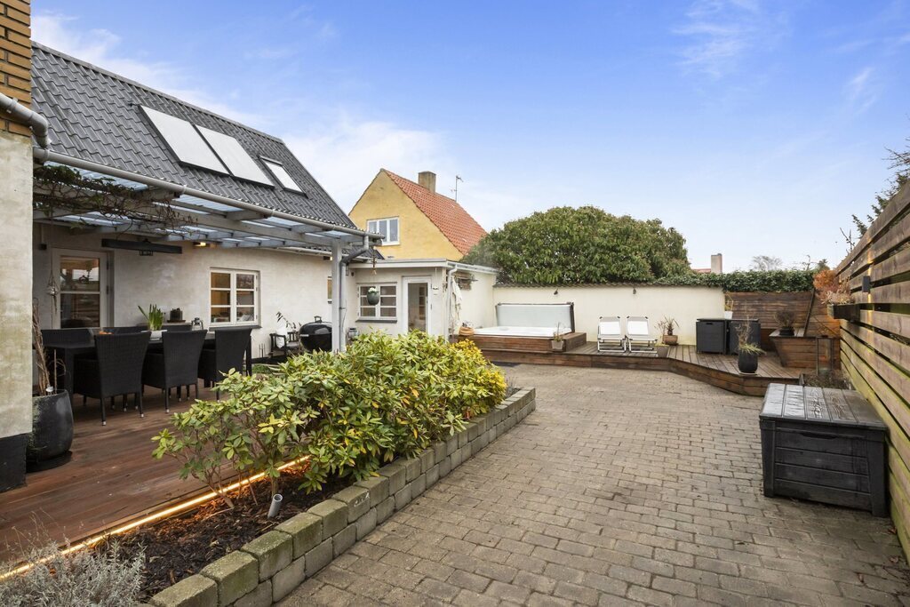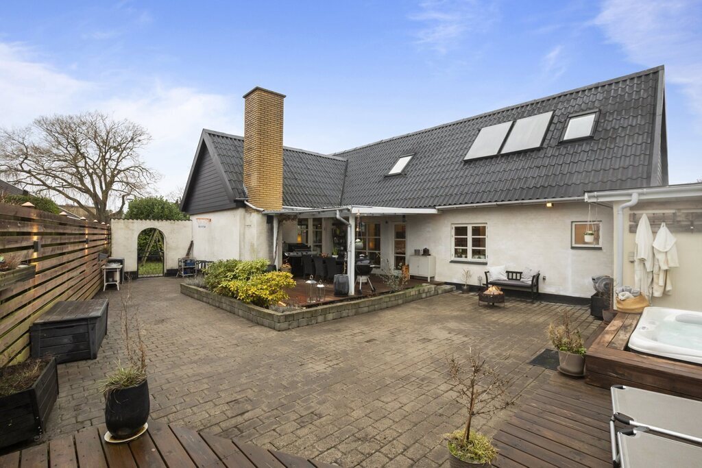 Our house (230 m2 or 2475 squarefeet) is located close to Copenhagen airport in a quiet villa neighbourhood, and close to the city. Easy public transport access to Copenhagen centre (2 stops on the train to city, 1 stop to airport). Train station 7 min walk. Private parking for 2 cars. 2 story house - upstairs you will find guestroom with single bed+ walk-in closet, a livingroom and office/guest bedroom with double bed, also exit to roof terrace. Downstairs a big open kitchen/dining area, living room, master bedroom + ensuite bathroom/toilet with shower, 2 additional bedrooms, laundry room, guest toilet and bathroom with bathtub. Livingroom, kitchen, one of the bedrooms access the beautiful secluded private yard - equipped with 2 terraces, outdoor spa (39 degrees celsius all year around), barbecue grill and 2 outside dining tables, fire pit and sunbeds. Livingroom also accesses glassed-in veranda/sitting area headed towards the garden with possibility to open the full side, which creates a sort of indoor terrace towards garden. Garden contains flowers, small lawn, swings and a lounge area. All newly renovated and contemporary.