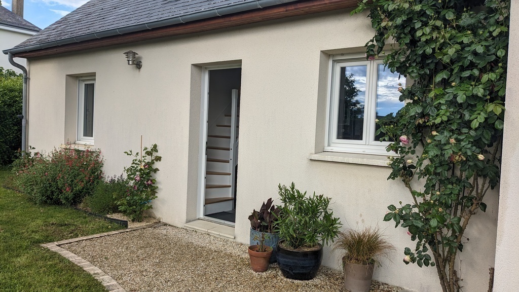 Recent house located in the heart of the Loire Valley in a village, peaceful neighborhood, 3 bedrooms + office with sofa bed, 2 bathrooms, large kitchen open to living room, garage and enclosed garden of 400m².