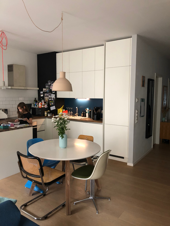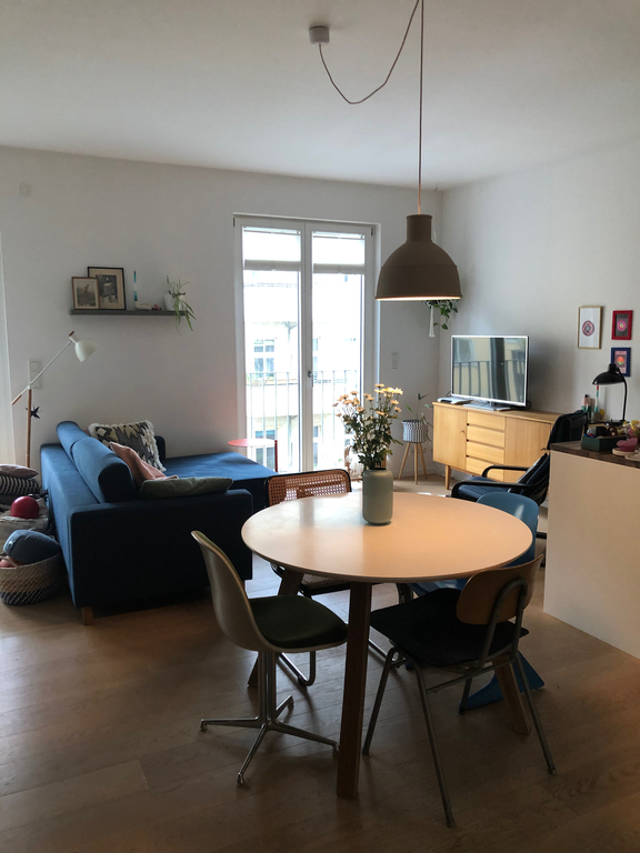 Our flat (92 sqm) is located on the 3rd floor of a new building constructed in 2016. We have a large eat-in kitchen, two bedrooms with desks and a children's room with a loft bed. We live in an area called Samariterkiez in Friedrichshain, a quiet residential area with many families and good restaurants. It takes 9 minutes by the metro to Alexanderplatz. In summer you can enjoy the evening sun from our 7 sqm balcony. In Berlin you don't need a car, public transport is quicker and easier to get to everywhere.