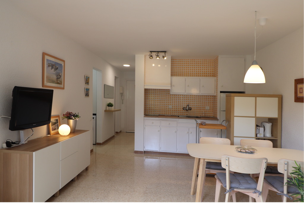 The Cala Crancs apartment, in Salou (Costa Daurada, Tarragona) is located a few meters from Cala de Crancs and close to other coves. It is also located a few kilometers from Port Aventura Park and Ferrary land. From Salou you can easily reach Barcelona (107 km) and other interesting cities. You can also access important food and wine routes.