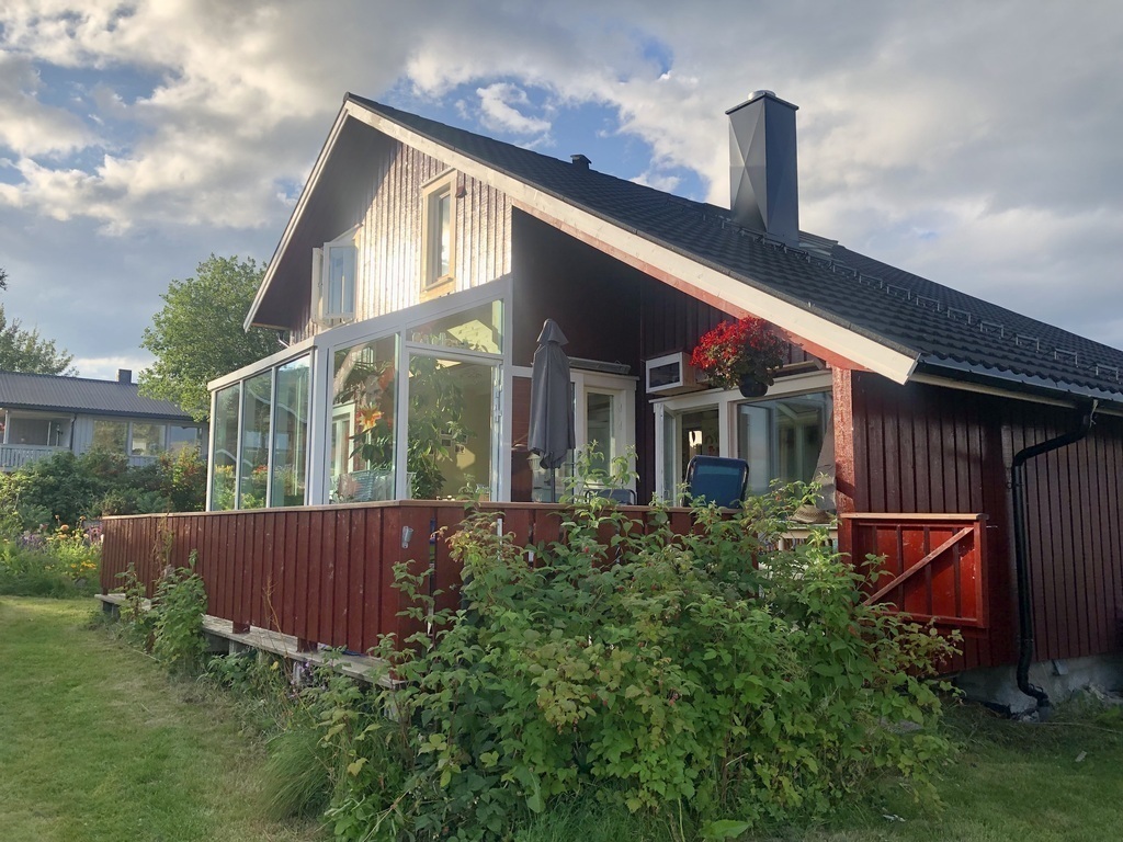 Our house is located in a quiet area 1 km outside "The Blue City" Sortland and 100 m close to fields with many hiking opportunities. We have a large garden with 2 greenhouses, lots of vegetables, flowers and a cute cat.