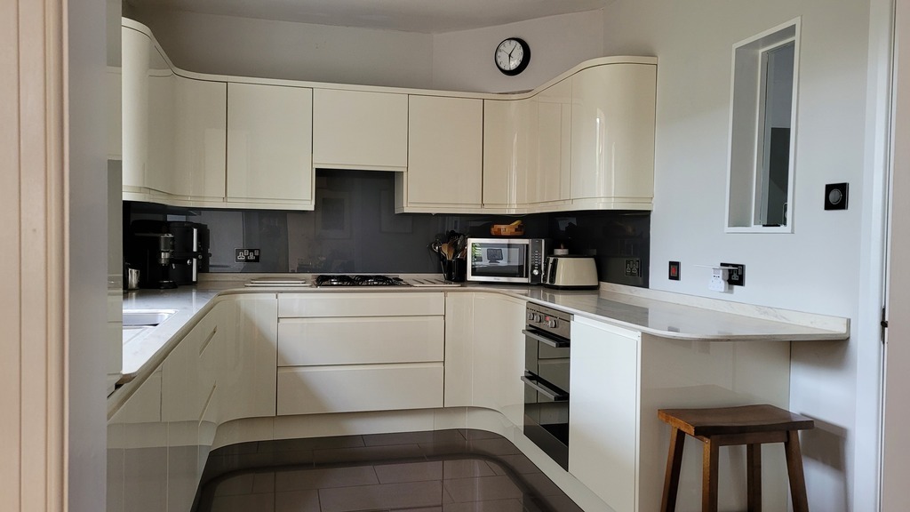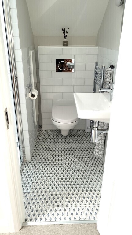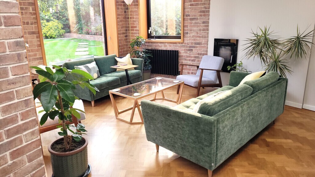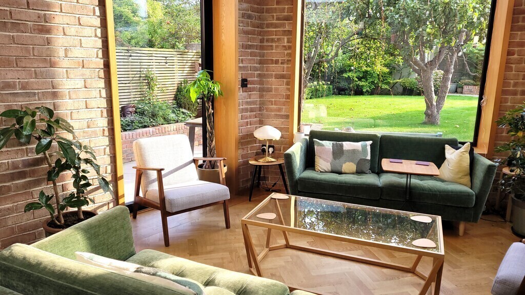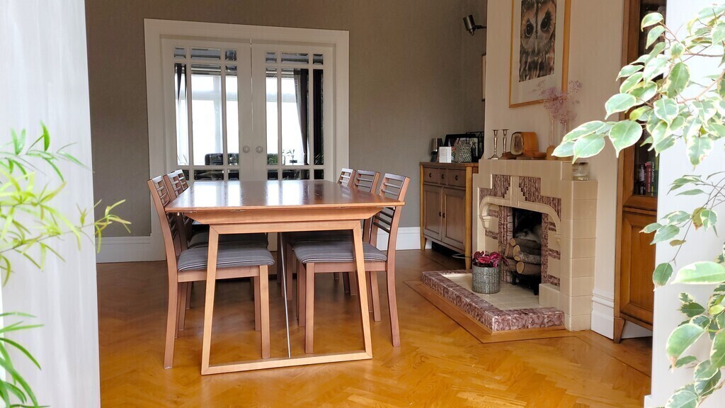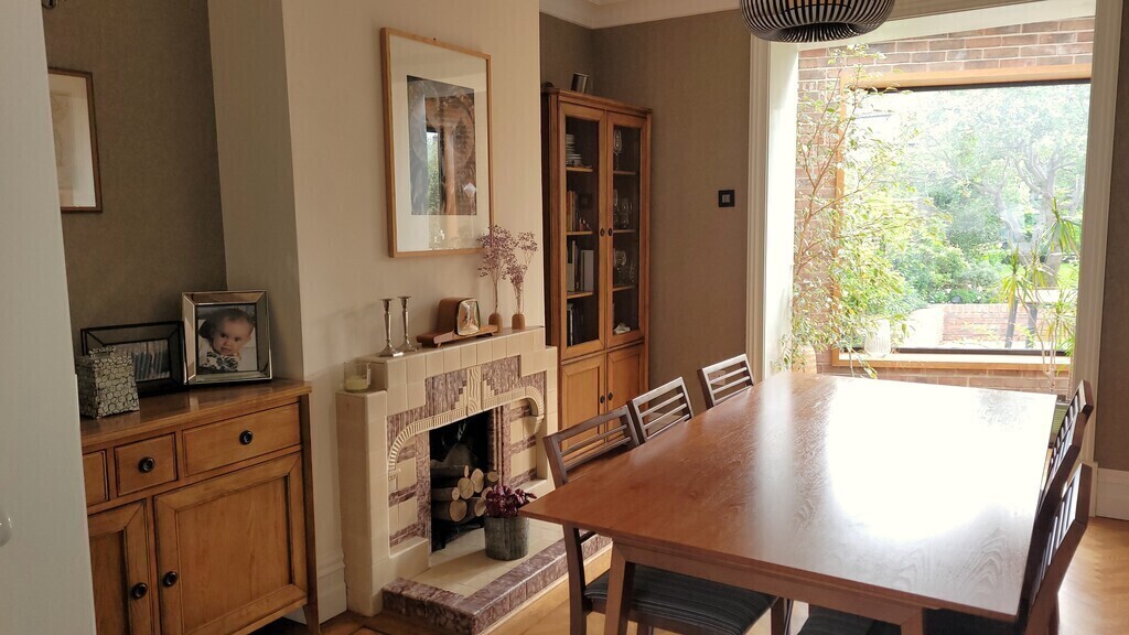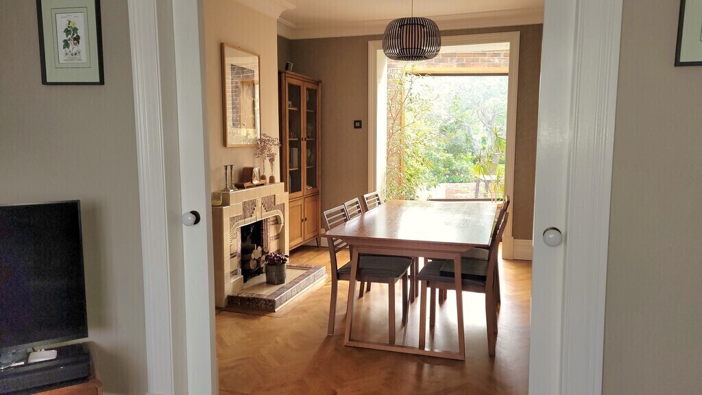 We have a lovely home, unassuming from the front but a green oasis at the back of the house. The main feature of our home is our beautiful garden room which is a relaxing, bright space where you can sit all year round and feel like you are in the garden – there’s also a lovely wood-burning stove for the winter time. We have 3 floors with 3 bedrooms, 3 bathrooms, a dining room, sitting room, kitchen, utility room, garden room and porch. There’s plenty of space for parking on the driveway.