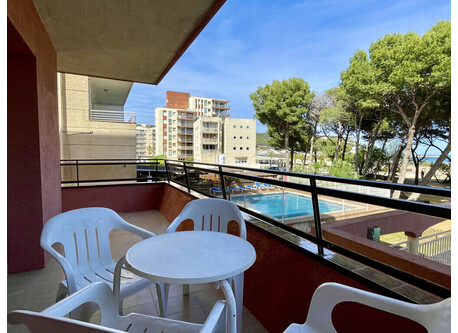Se trata de un conjunto de 60 apartamentos, todos con vistas al mar y garaje, con un amplio espacio comunitario con piscina y campo de tenis. Entre el complejo y la playa no hay ninguna calle. El apartamento tiene terrazas al lado mar y al lado piscina. Hay un portero que vive allí y se encarga del mantenimiento y del control del conjunto. El apartamento es especialmente indicado para niños.