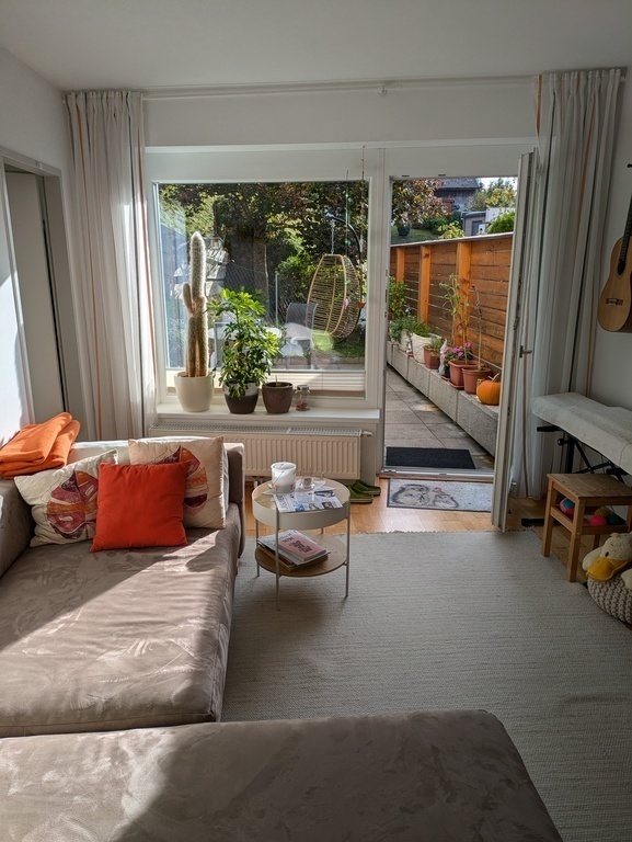 Die Wohnung verfügt über einen offenen Raum mit Küche, Essbereich und Wohnbereich mit Sofa, ein Schlafzimmer mit Doppelbett, ein Badezimmer und einen Abstellraum. Außerdem finden Sie eine Gitarre, ein Keyboard und verschiedene Spiele. Es gibt auch eine schöne Terrasse, die sich ideal zum Entspannen und zum Genießen von Mahlzeiten eignet.